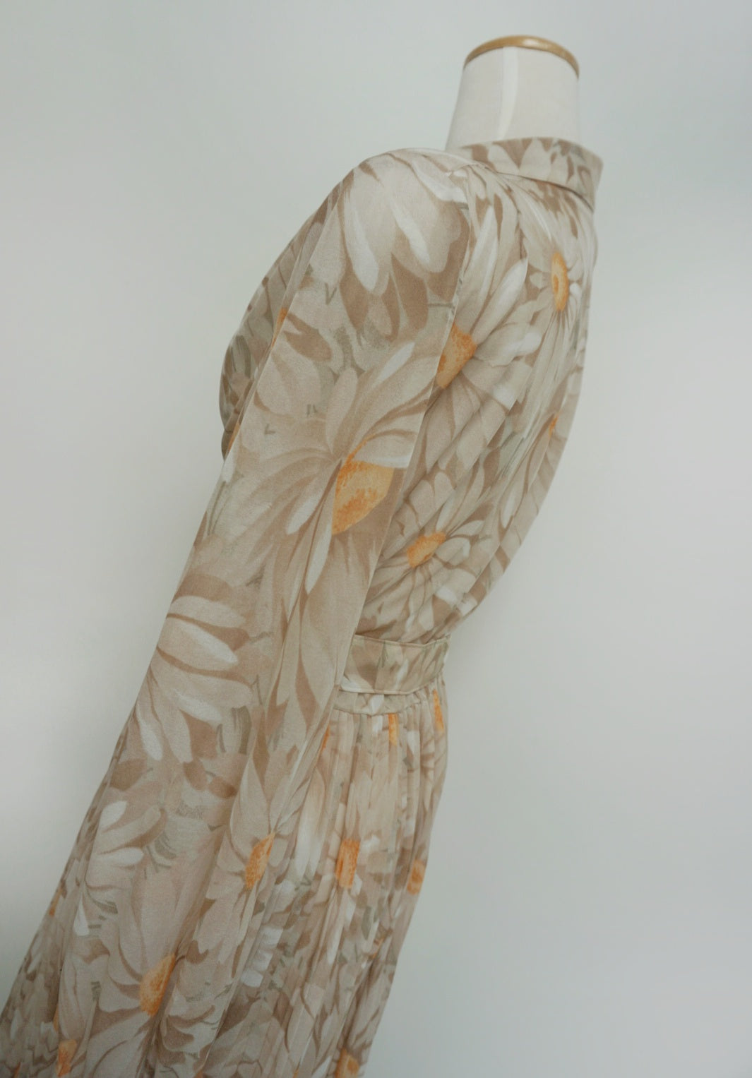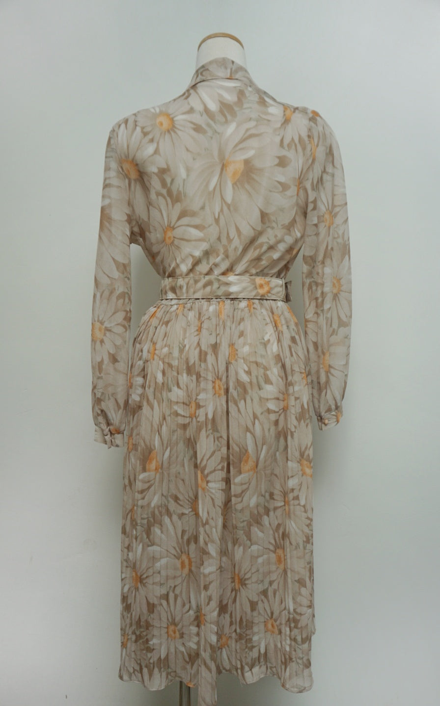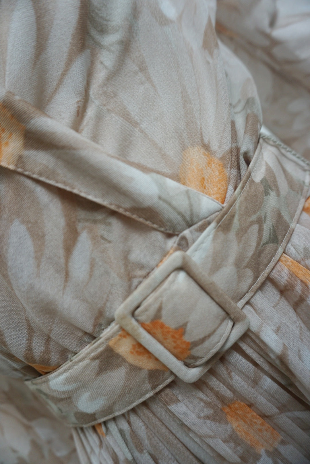 Stunning vintage 1970s crossover floral dress with matching fabric belt. Sheer-ish fabric (but not flimsy - quite a strong fabric) - if worn without tights requires a slip (any inexpensive slip will do the job!)